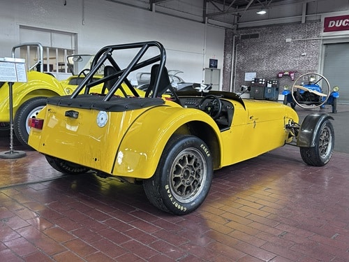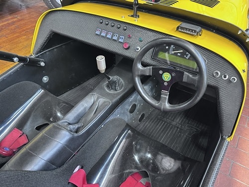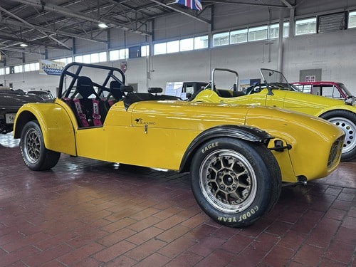 The Caterham 7 Blackbird was launched in front of the world’s automotive press on July 8, 1999, at the F1 Circuit in Portugal, and the performance from this 1000cc sports car was amazing. Under the hood is a Honda Blackbird cbr 1000 motorcycle engine. Borrowing many styles from its predecessor (the Caterham r500), the Blackbird’s light engine and gearbox, attached to the super light chassis, achieves an impressive weight of 1000 pounds. Add to that 170 bhp at 10,750 rpm and a six-speed sequential gear box, and you have a sensory overload of gear changes and “revs.” This “rocket” will accelerate from 0 to 63 in 3.9 seconds.