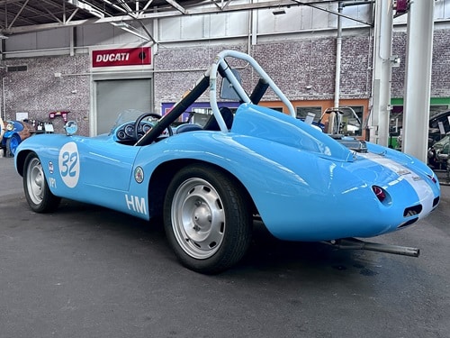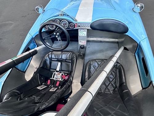 This car is the marriage of a Devin F body and a 1954 Renault 4CV chassis and drivetrain. Originally built by Harry Rasmussen in the Pacific Northwest, it was completed in time for display at the 1962 Seattle World’s Fair. It passed through several known owners hands before being “re-discovered” in a very incomplete state in 2007 at a Puyallup, WA swap meet, where Bob Dunston purchased the car. Bob scrounged parts through most of 2010, then set in on the restoration in earnest, completing it in time for the July 8, 2011 Portland Historics. After sorting some carburetor and clutch issues, the car finished a credible 24th out of 32, between a Crosley Special and a Saab 96. It has 9 race meets in its log book since restoration. Said Bob, “It a lot different to drive than my Lotus! It’s a lot of fun!