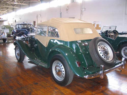 By 1949, the MG TC had become outdated. When it was originally released, it was a slight improvement of the TB version that was designed prior to World War II. MG (which stands for Morris Garages) Car Company answered the call for a more modern car by introducing the TD in 1950. It was a smashing success with 30,000 produced in just three years. The handling was much improved from the earlier TC as it offered independent double arms and coil spring in the front. The brakes were significantly better which transformed the TD into a reasonable sports car making the TC feel as outdated as it was. The TD you see here was restored by Museum member Jim Biery for his father as a father’s day present. This car is a meticulously correct restoration and stands as a time warp of what a TD would have looked like over fifty years ago when it was new.